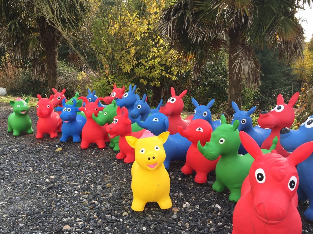 Exemples : jeux pour olympiades, château de Noël, Halloween, mascottes…
